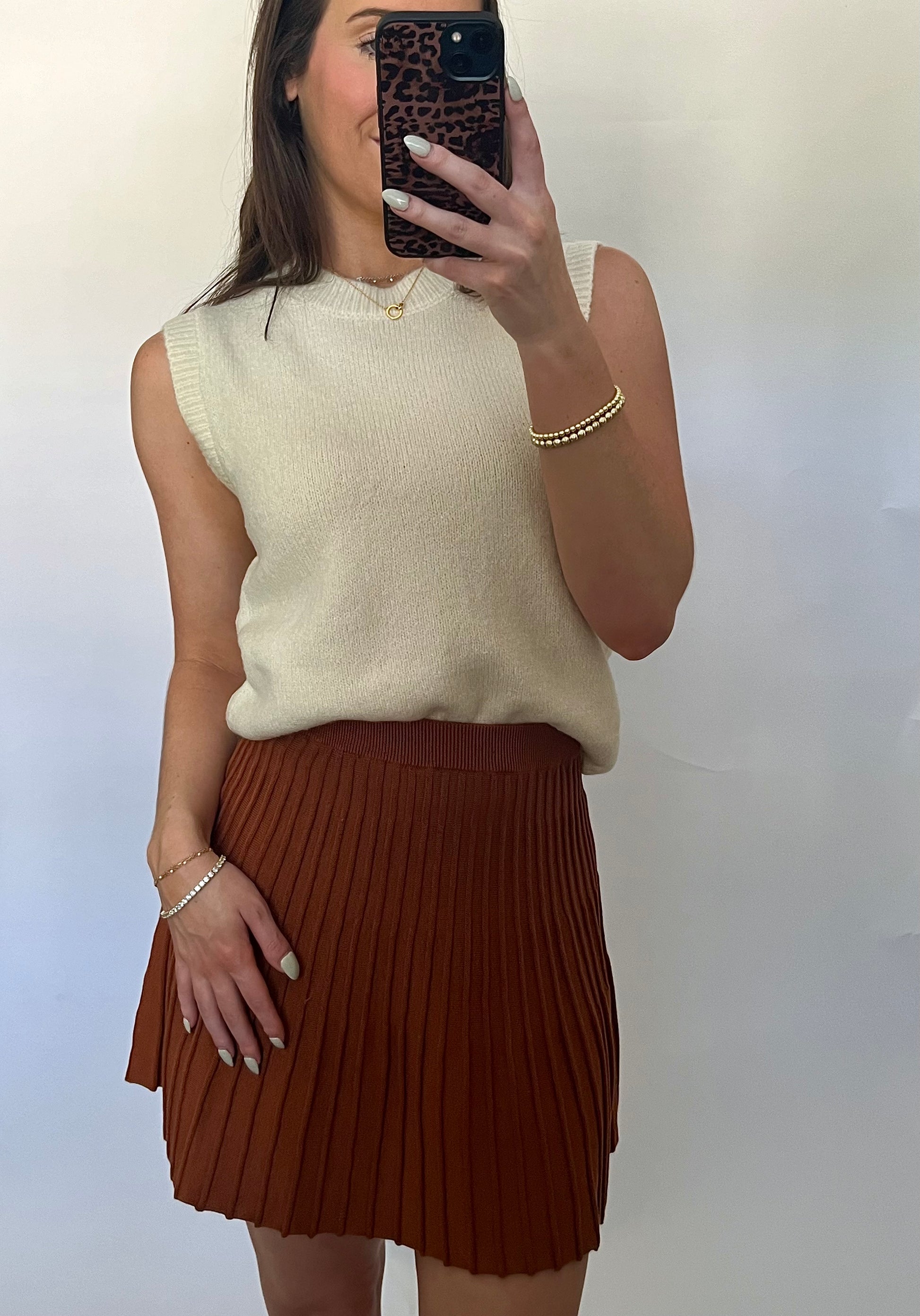 Explore the world in style with our Alpine Adventure Skirt! Made for the daring and adventurous, this skirt is perfect for both casual and dressy occasions. The soft ribbed texture offers a comfortable fit, while the classic pleats create a flattering silhouette.