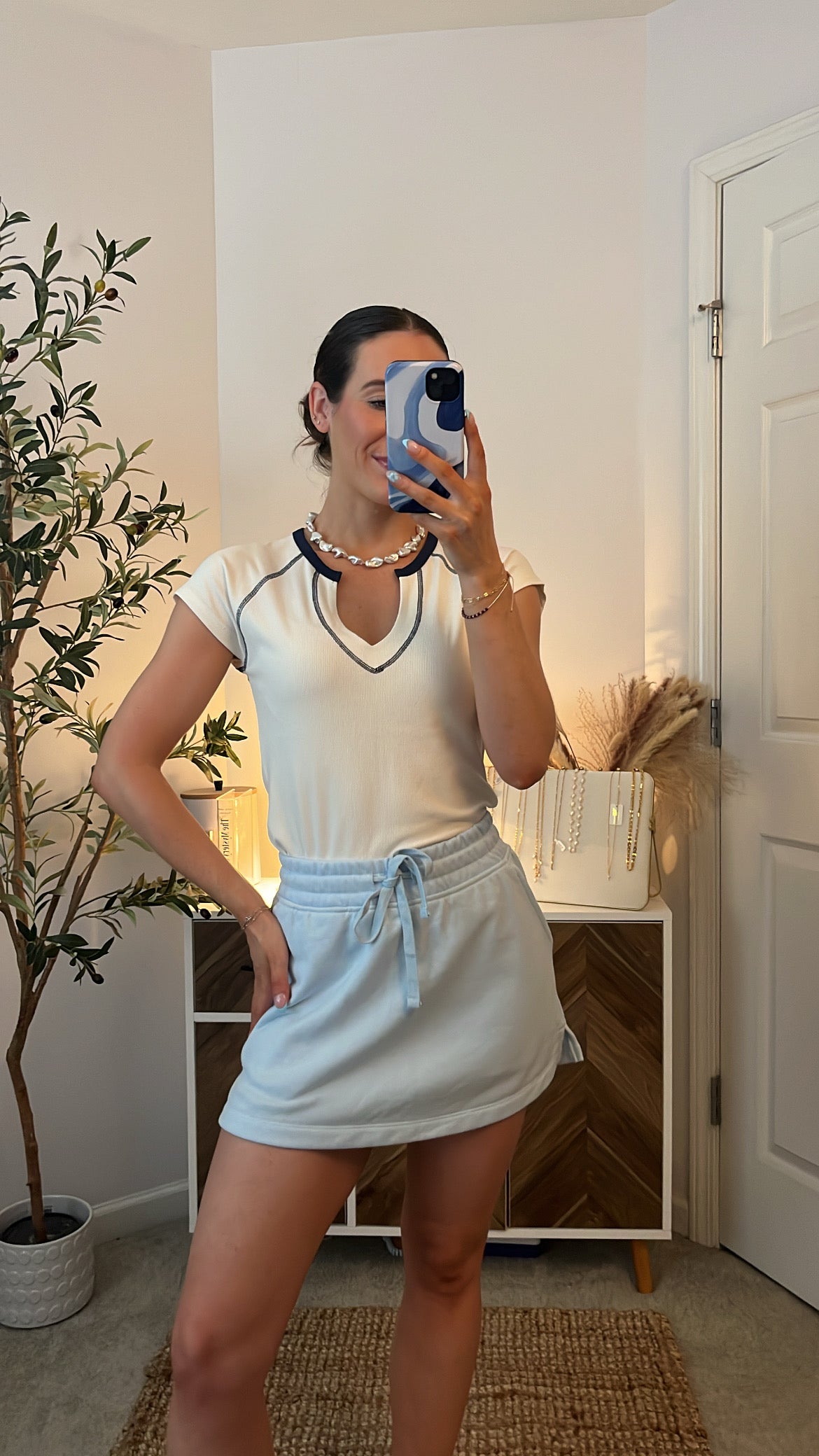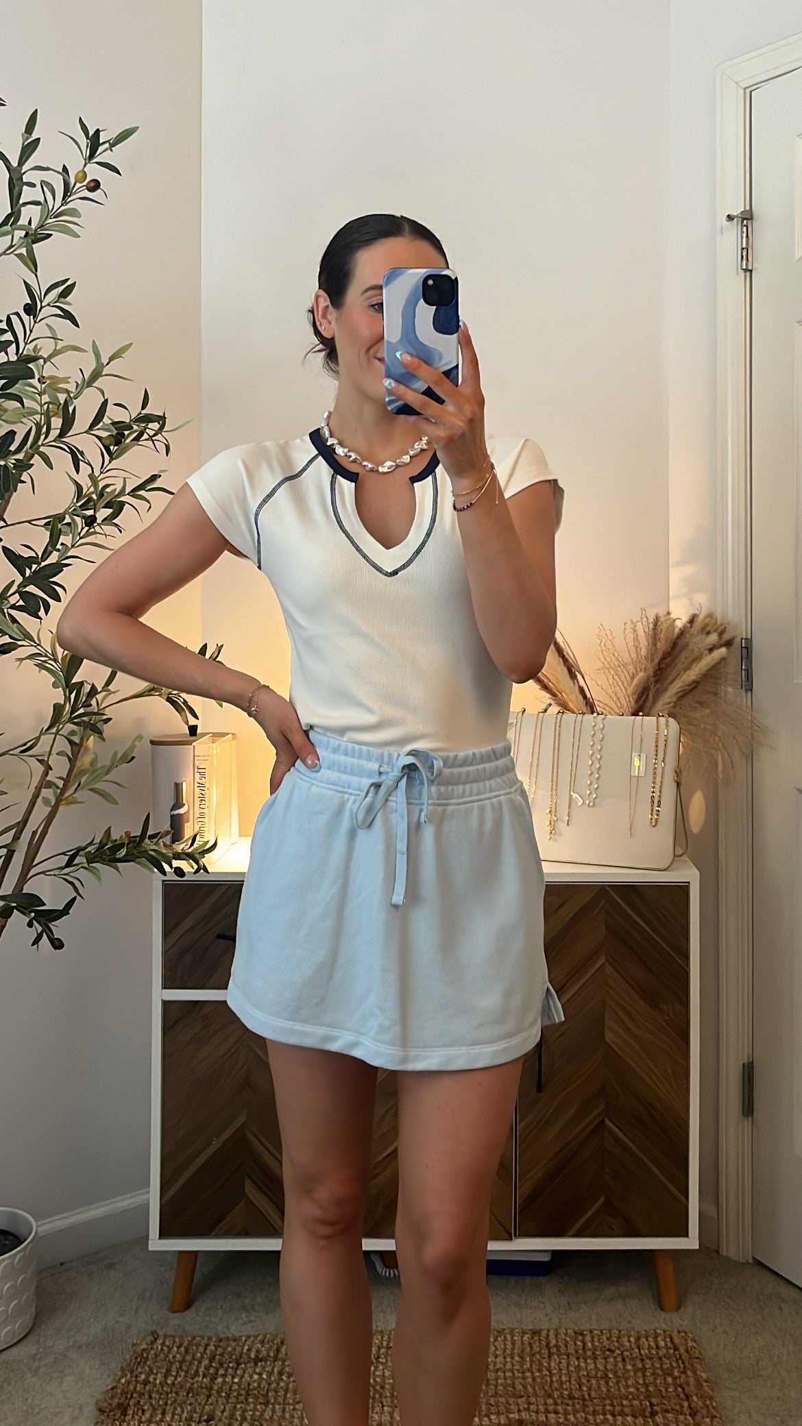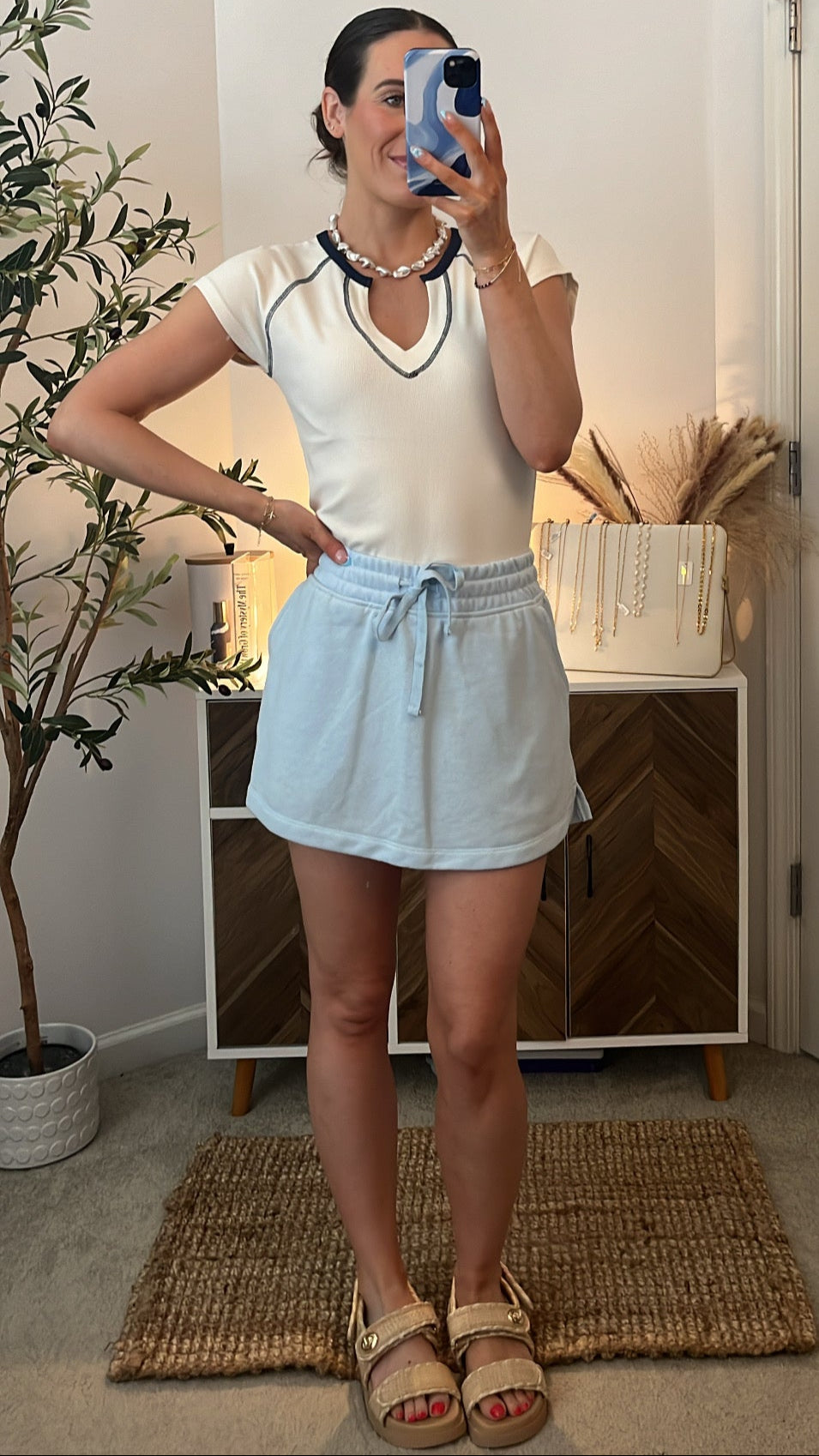 Our chic french terry causal skort is an effortlessly stylish piece that prioritizes both comfort and versatility. It features an adjustable drawstring for a customized fit, complemented by an elastic waistband ensuring ease of movement. Whether you're headed to a casual outing, planning a picnic, lounging at home, or engaging in a leisurely game of tennis, this skort is the perfect choice!