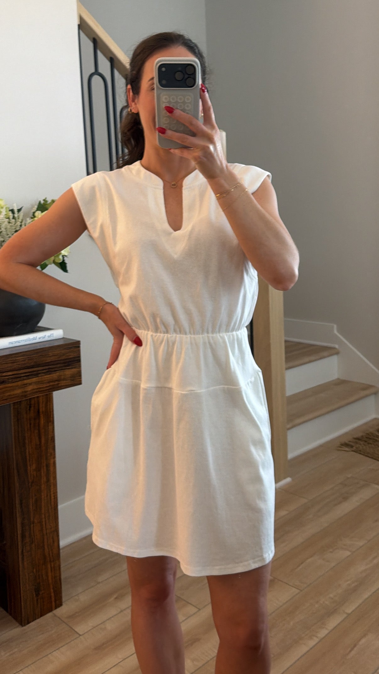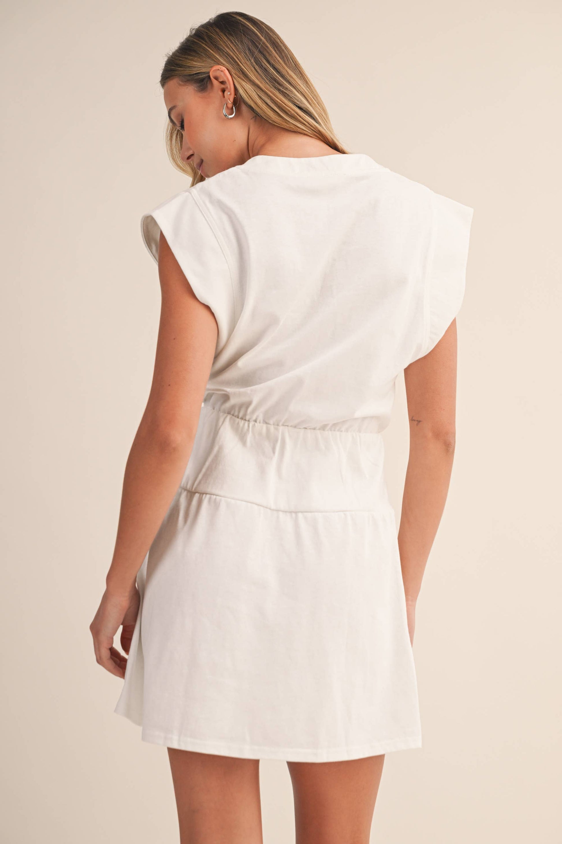 Effortlessly refined and endlessly wearable, The Isla Dress is your go-to silhouette for warm days and golden evenings. Designed with a soft neutral tone and a flattering, easy fit, this piece blends timeless tailoring with relaxed coastal charm.