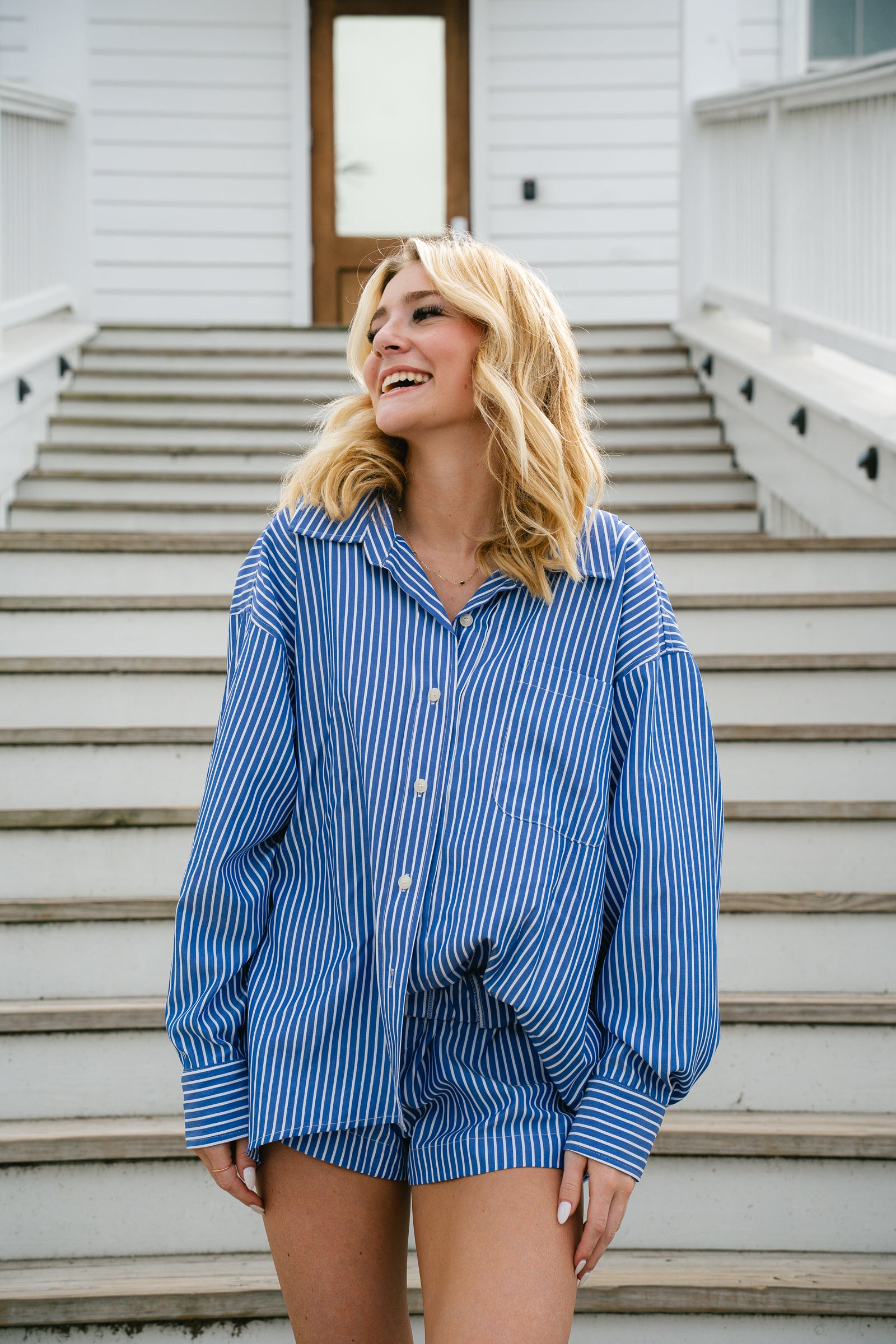 Celebrate your patriotic spirit with our exclusive Stars & Stripes Set. This eye-catching set combines blue & white stripe designs that make a perfect statement for Summer holidays and beach getaways!