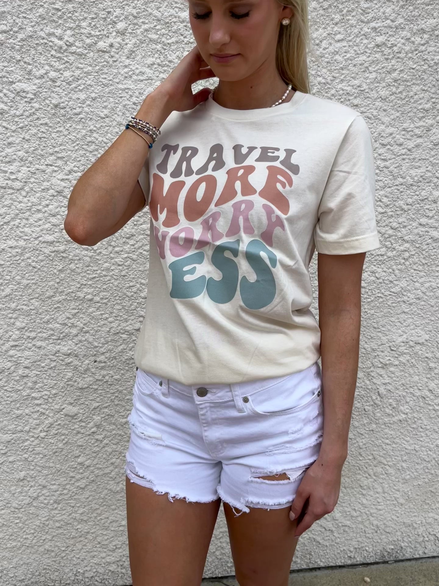 This tee says it best -- Travel More, Worry Less! Featuring a classic unisex design, this comfortable tee will have you feeling free and easy on your next adventure. Wherever you go, stay cool and casual, and don't forget to bring this breezy travel tee along for the ride!