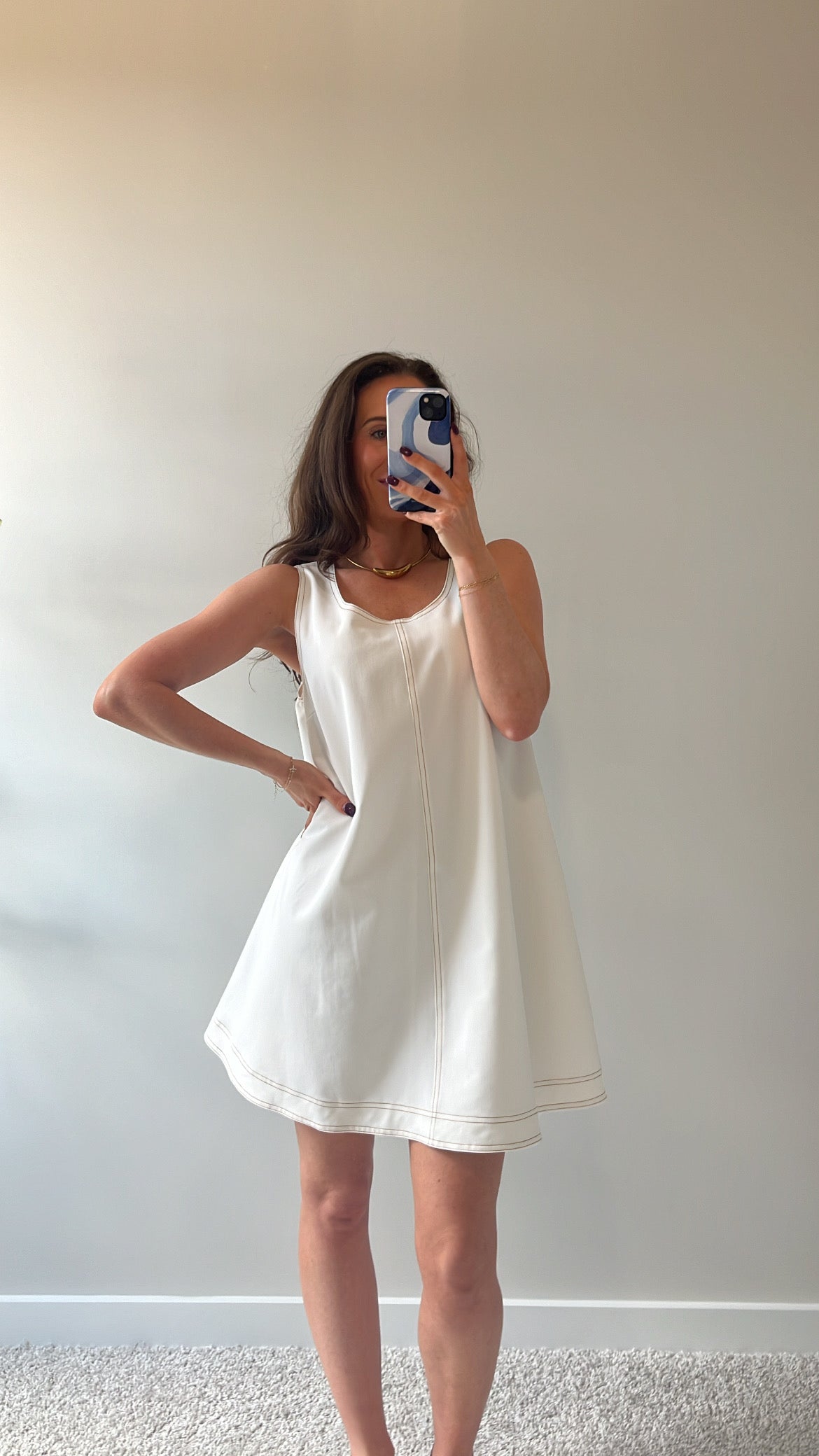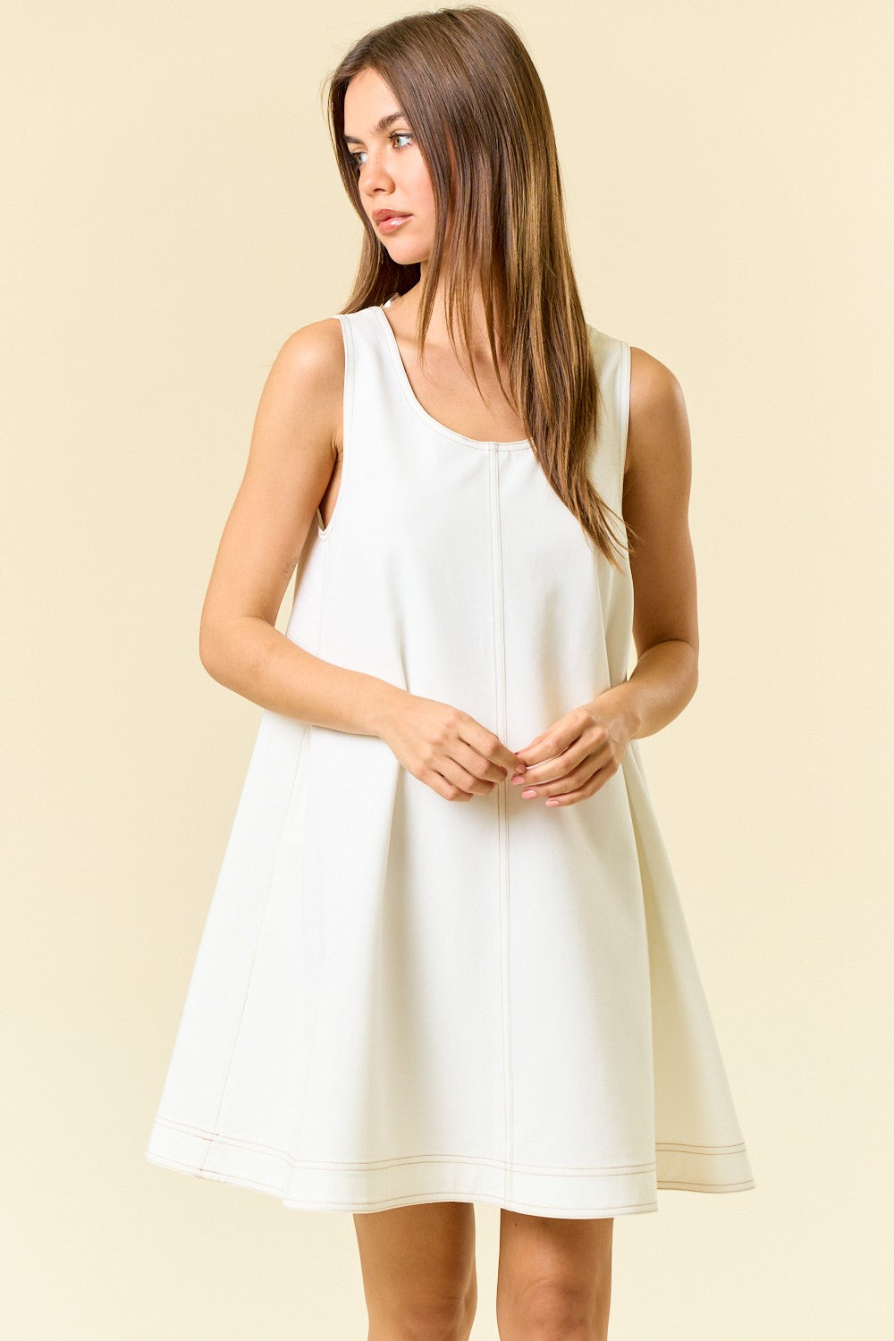 Crisp, clean, and endlessly versatile — The Wanderlight Dress is your go-to travel essential for fall escapes and effortless styling. Crafted in a lightweight woven fabric with subtle stretch, this sleeveless A-line silhouette offers just the right amount of structure while still feeling easy and breathable.